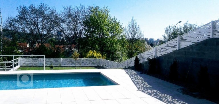 Návrh, dodání a montáž kompletního oplocení včetně zábradlí šikmých stran.