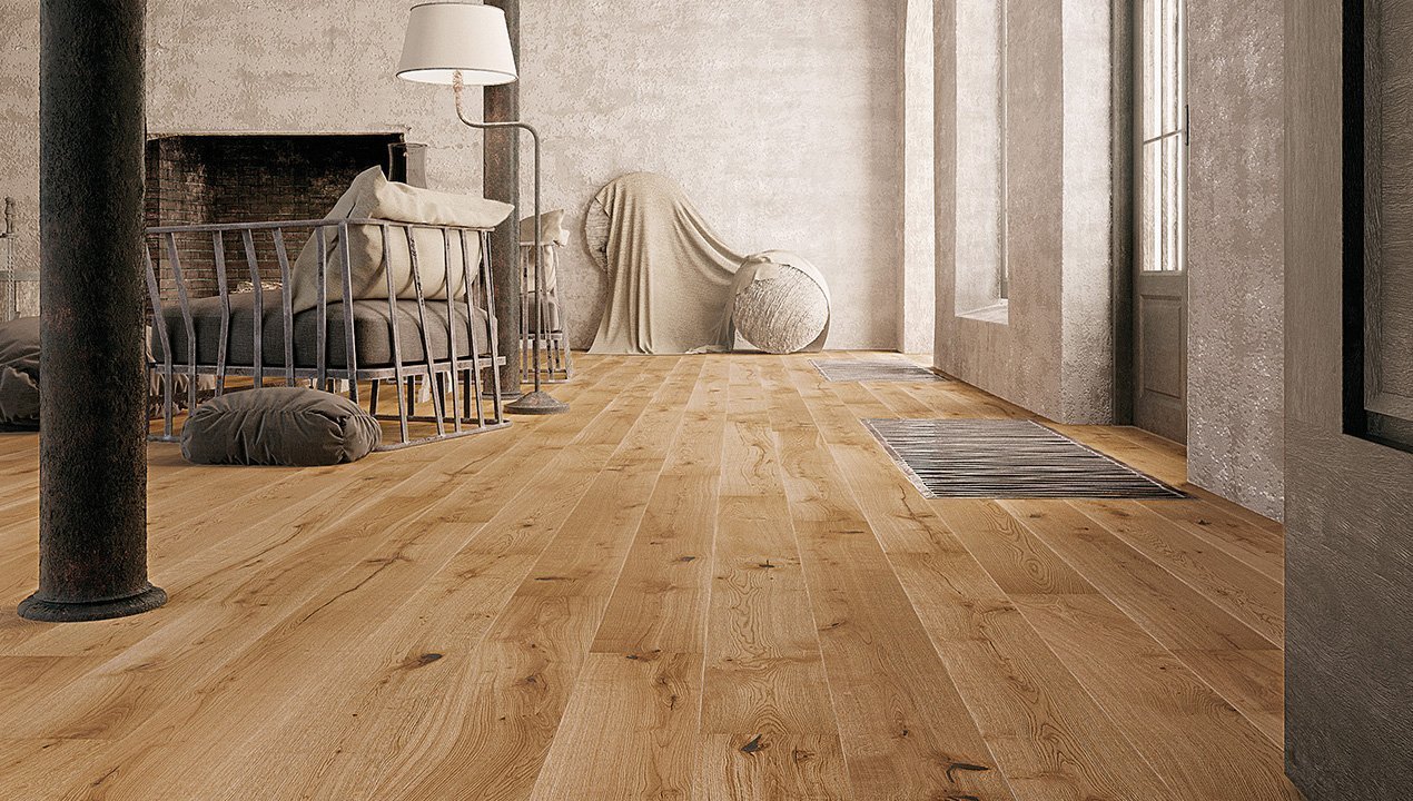 Dubová podlaha s 2x frézovanými hranami potažená bezbarvým přírodním olejem v interiéru rodinného domu v Praze.