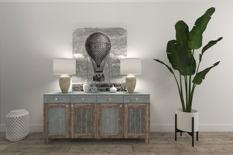 Vidiecka kuchyňa s pultom ktorý slúži zároveň aj ako barový s príjemným  osvetlením. Drez s výhľadom do záhrady. Jedálenská časť umiestnená taktiež do presklennej časti obývačky. Dominantou je obklad v kuchyni  v tvare rybej šupiny a komoda na mieru v modrých odtieňoch.