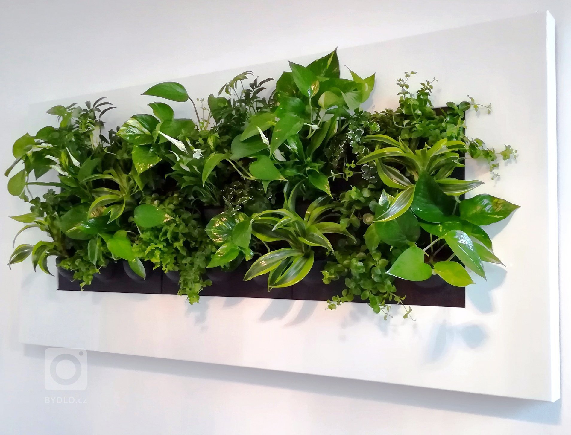 Živý zelený obraz LivePicture Velikost 152x72x7 cm Samozavlažovací systém Rezervoár vody (24 l) Rám v bílé, šedé a antracitové barvě