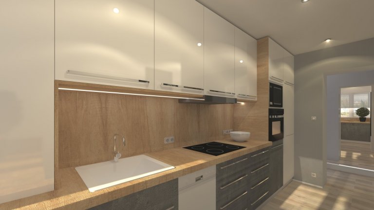 Hlavním cílem rekonstrukce tohoto bytu bylo poskytnout oddělené prostory dívce a chlapci, kteří toužili po alespoň částečném soukromí a zároveň si oba chtěli svůj prostor přizpůsobit svým potřebám a přáním.