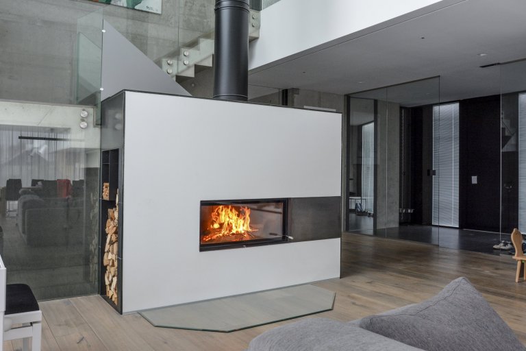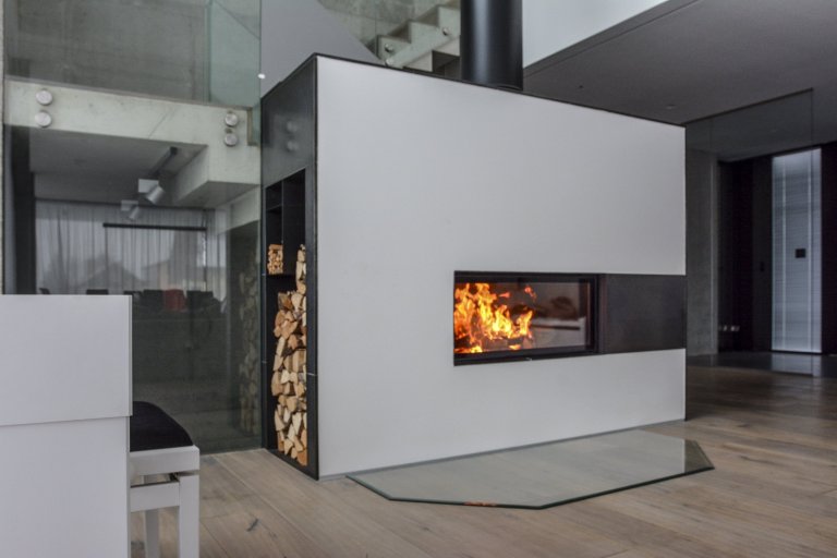 Jedná se o obestavbu krbové vložky Brunner Architektur Kamin 45/101. Pohledový komín je od firmy Schiedel a velkoplošná keramika v antracitové glazuře od…
