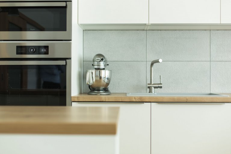 Panelákovému bytu hodně prospělo zbourání příčky mezi kuchyní a obývákem. Prostor se tak pěkně otevřel a já klientce pomohla navrhnout jak praktickou kuchyň, tak funkční obytnou a jídelní zónu. Vše spolu v jedné místnosti krásně funguje. Klienti zde rádi tráví společný rodinný čas a necítí se tady jako v panelovém bytě. Více si o projektu přečtěte zde http://www.kuchynskyporadce.cz/panelakova-moderni-bila-kuchyne-s-drevodekorem-propojujicim-celou-mistnost.