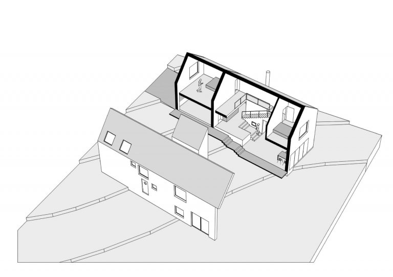 Pan Miroslav se svou manželkou Markétkou toužili po bydlení v ekologickém domě šetrném k životnímu prostředí s malou zastavěnou plochou. Přáli si dům propojený s přírodou, v jehož interiéru bude dostatek místa pro jejich sbírku obrazů a fotografií. Výsledkem projektu práce Jana Macha a Jana Vondráka z kreativního studia Mjölk architekti se tak stal prostorově velkorysý dům, který v přízemí kopíruje terén pozemku. Interiérem tohoto domu přitom od přízemí až ke krovům prostupuje neobyčejně otevřený prostor se schodištěm. Právě podél něj tak vzniklo místo na výstavu různých artefaktů, ke kterým má manželský pár úzký vztah. Obrázky a fotografie rozbíjejí převahu bílé barvy v interiéru a dodávají celému bydlení osobitý charakter.