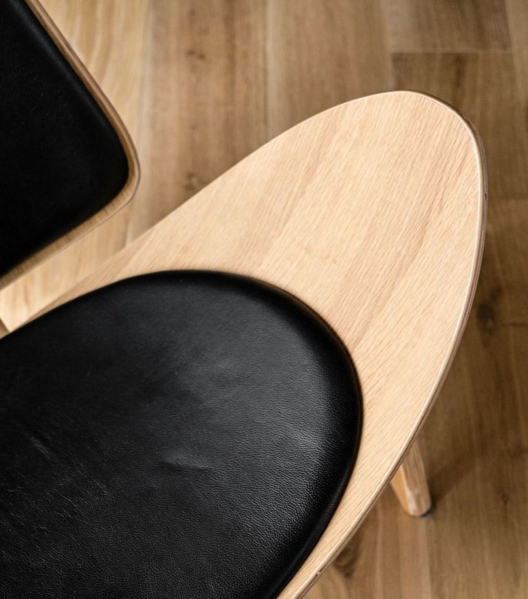 Krásné masivní dřevo s důrazem na geometrii střechy je kombinováno s typicky mužskými barvami černé a šedé. Interiér byl doplněn o jednoduchý moderní nábytek rovněž v černé a šedé barvě. V jednom z výklenků se nachází čtecí koutek s pohodlným designovým křeslem a nastavitelnou stojací lampou. V sousedním výklenku se zase ukrývá skromná knihovna. Naproti je v dalším výklenku s oknem pracovní prostor skládající se z jednoduchého dýhovaného stolu a pracovní židle na kolečkách. Na přání majitele bylo místo s pracovním koutem obohaceno o modulární pohovku šikovně obepínající stěnu a malé odkládací stolky.