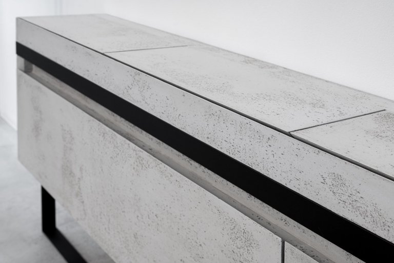 Koncept/ barevnost / materiály – Hlavní myšlenou bylo vytvořit centrální místo domu, které bude středobodem pro přátelská setkání. Otevřený krov jsme opatřili bíle mořeným podbitím, tím jsme se zbavili fádního sádrokartonového podhledu. Velkým plochám dominuje bílá barva na stěnách, stropu a podlaze. Dále pak světle šedá betonová stěrka na nábytku. Pro vytvoření kontrastu jsme použili černé subtilní kovové prvky na kovových podnožích nábytku a osvětlení. Ve větší ploše pak na krbu a kuchyni. Železobetonová kuchyně a komoda na míru jsou unikátem tohoto interiéru. Zástupcem struktury bylo dřevo, konkrétně ořech, který byl použit na komodě, barové desce, jídelním a konferenčním stolku.