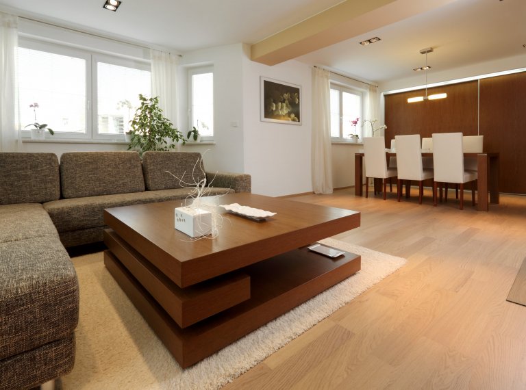 To vše je vyváženo nerezovými prvky, včetně digestoře, rolety a stropního osvětlení. Vizuálně pak kuchyně zasahuje i do prostoru jídelny, kde najdeme černý jídelní stůl i závěsnou skříňku v našem černo-žlutém designu. Celý prostor kuchyně, jídelny a společenského koutku tak krásně splývá v jeden celek.